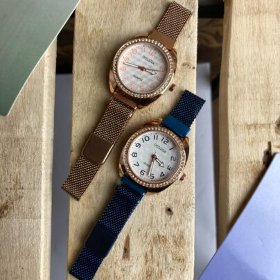 ساعت زنانه/دخترانه بند فلزی نگین دار برند oulijia