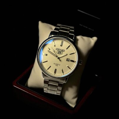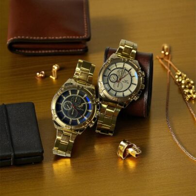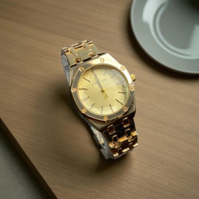 ساعت الوس بند استیل موتور کوارتز طلایی فول تاریخ