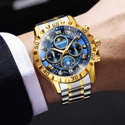 ساعت مردانه چهار موتور binbond شب تاب طلایی