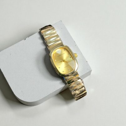 ساعت زنانه/دخترانه بند استیل طلایی مستطیلی برند HONGRUI
