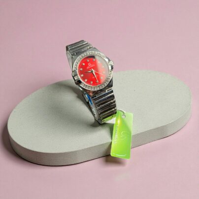 ساعت زنانه گرینویچ قرمز فول استیل نگین دار