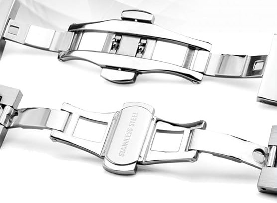بند استیل نسبت به بندهای چرمی و پارچه ای مزایای فراوانی دارد. نخست این که استیل تغییر شکل نمی دهد و به مرور زمان ظاهر خود را از دست نمی دهد. دوم این که دوام آن بسیار بیشتر است و در برابر عوامل آسیب زا مثل تعریق یا رطوبت مقاومت بیشتری دارد. سوم این که بندهای استیل ظاهر شیک تر و رسمی تری دارند و برای هر نوع استایلی قابل استفاده اند.